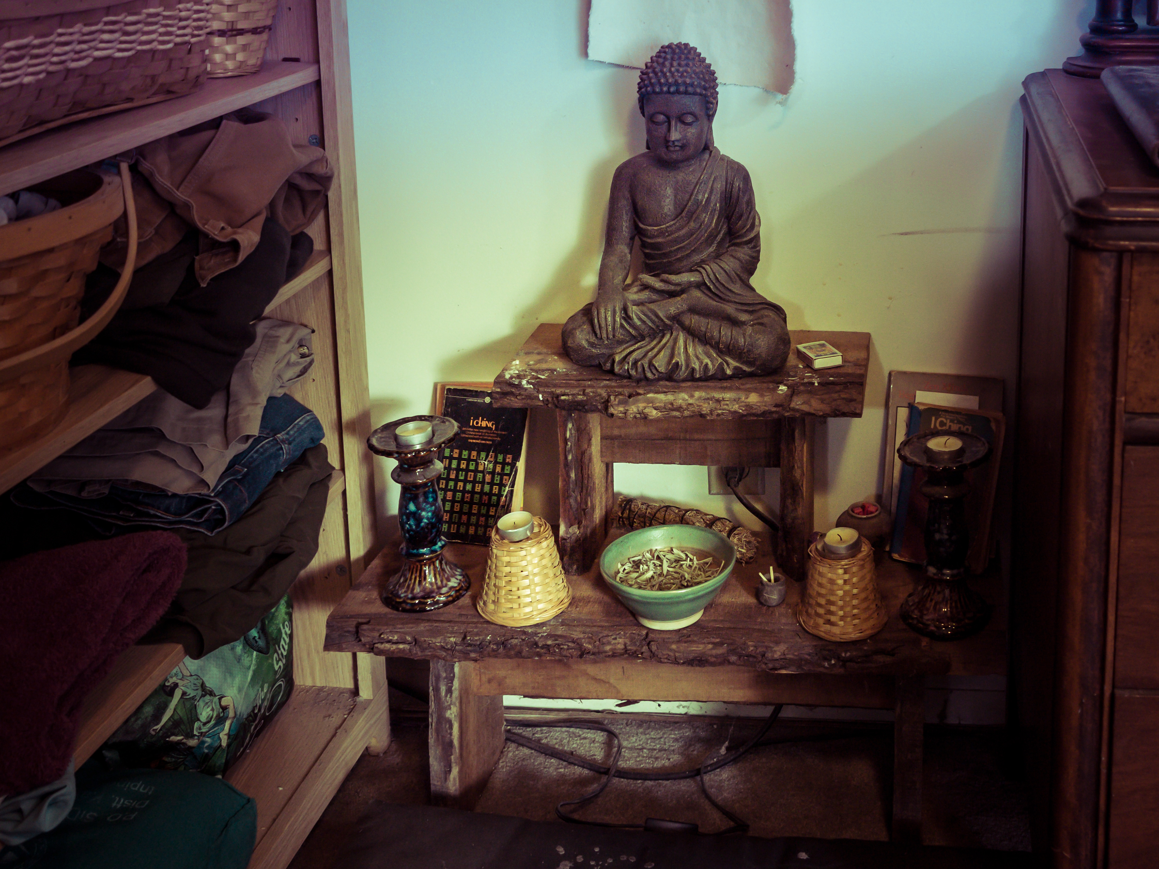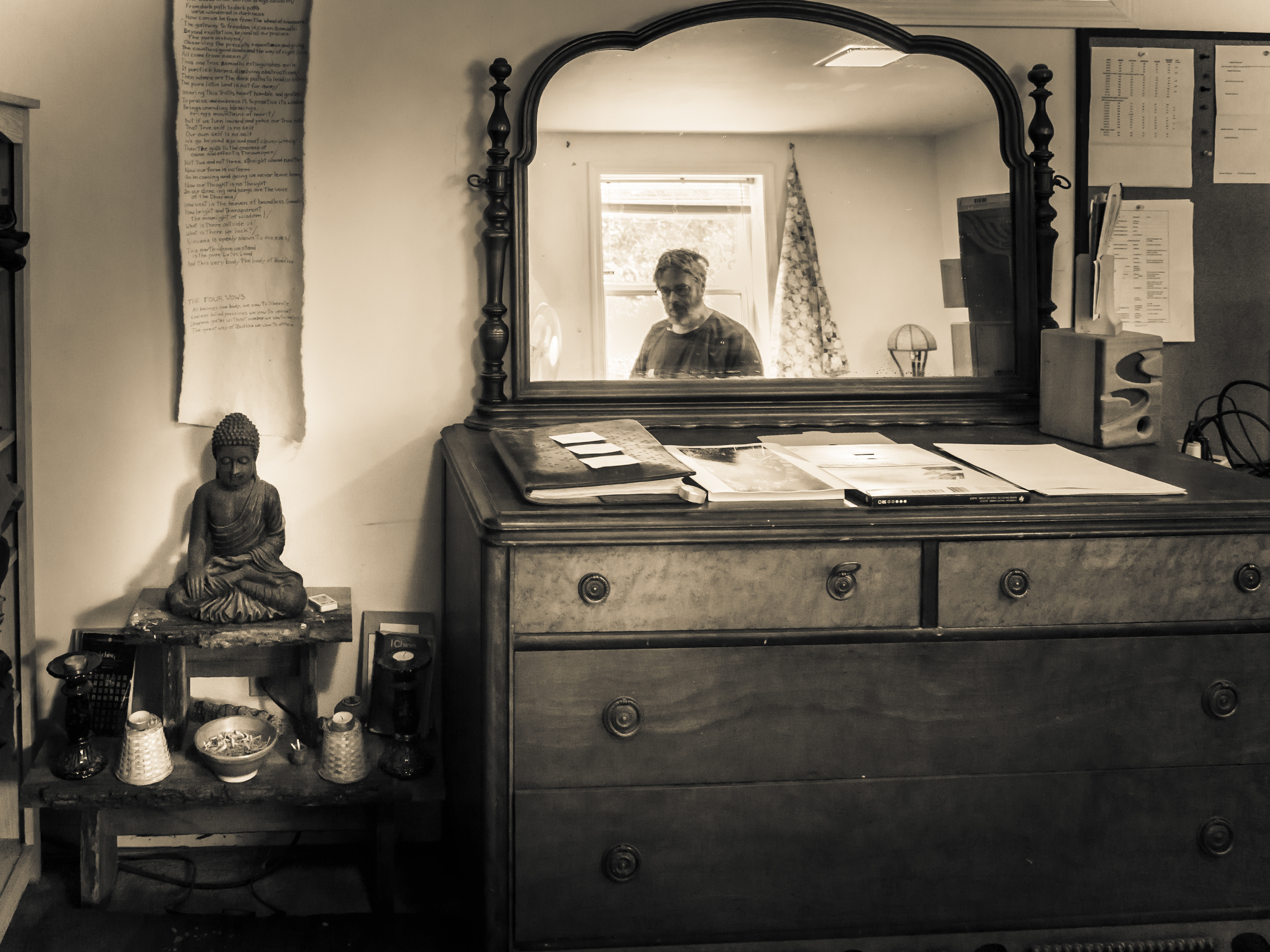 "To find and embrace the habitat to which we belong is, in the broadest sense, the foundation of peace and happiness. Long ago, the place of our first breath would become our home, simply from the natural connection of all living beings to that which nurtures and sustains them. All that was needed was right outside your shelter. Water, food, nature’s beauty and creative provender, culture, community and leisure. These are the elements of home. I remember from my young childhood what home is. With no sense of ownership I had deep connection to my family, the land, the sea, and natural beauty that brings tears to my eyes to this day. Walking the red earth road to the old wild Myrtle Beach over the creek with the eels, driving a cardboard box tank into the blackberries behind the house, finding sand dollars, this was home. The urge to create, from house carpentry to living costumes, is all part of a lifelong quest for home. As long as I am at peace in the present moment of creation, I am at home."